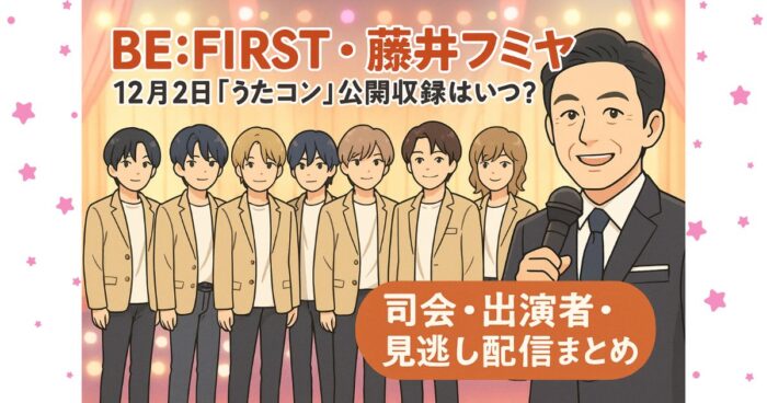 BE:FIRST・藤井フミヤ12月2日うたコン公開収録はいつ?司会・出演者・見逃し配信まとめ