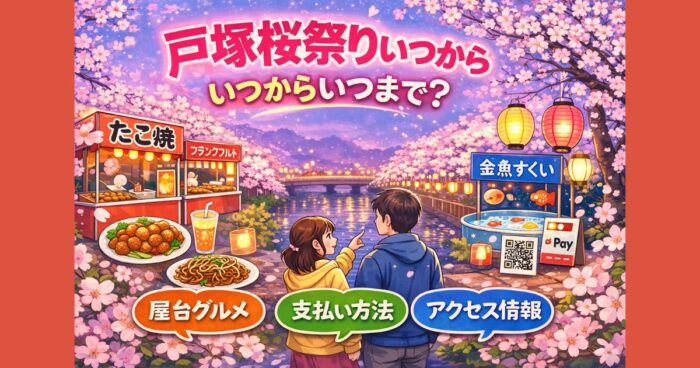 弘明寺桜祭り2026の屋台はいつまで?出店期間の目安、場所、営業時間、人気メニュー、現金・キャッシュレス支払い方法を例年傾向から分かりやすく解説します。 はじめに 春になると、横浜・弘明寺周辺はやわらかな桜色に包まれます。私も歩きながら「屋台はどこ?何食べよう?」と考えてしまうタイプです。 この記事では、弘明寺桜祭り2026の屋台情報について、公式発表されている内容+未発表部分は例年傾向からの予想を交えて、分かりやすくまとめました。 屋台の時期・場所・時間を先に知っておくと、当日かな... -