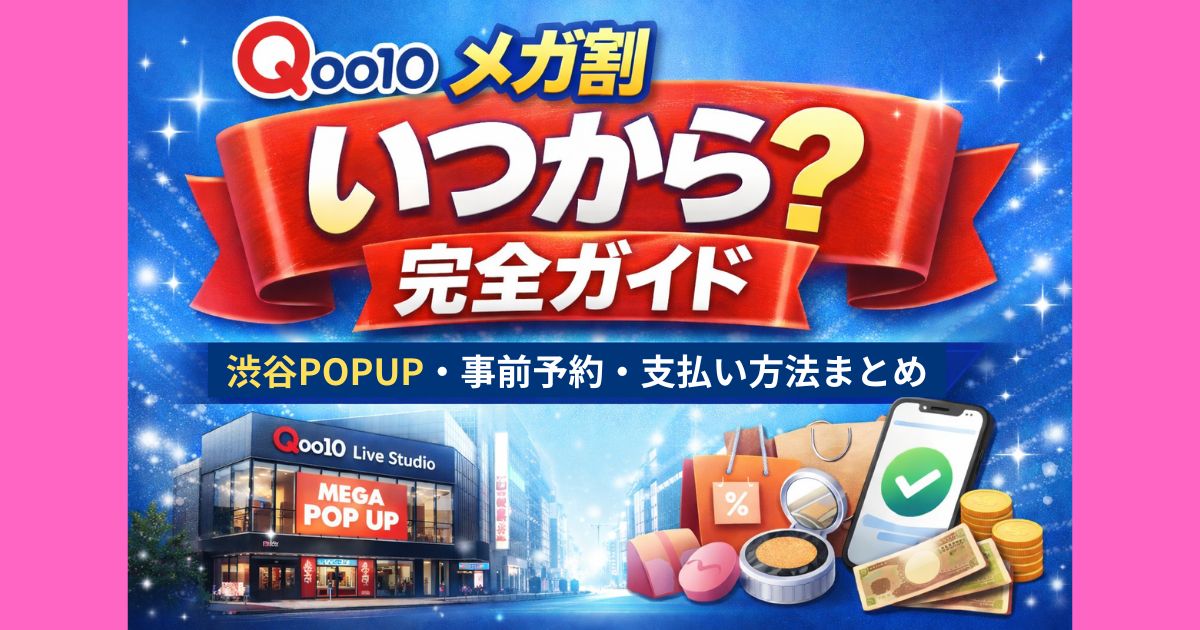 Qoo10メガ割2026はいつからいつまで?開催日程予想(2/28~3/12)や渋谷POP UPの場所・時間、事前申込み方法、支払い方法まで完全解説。20%クーポン攻略とお得な買い物術もまとめました。 はじめに 2026年もQoo10の大型セール「メガ割」がやってくる!この記事では、開催日程から渋谷POP UPイベント、事前申込み、支払い方法、お得な攻略法まで、2026年のメガ割を完全網羅して解説します。 いつから?何に注意?どうやって予約する? Qoo10メガ割2026はいつからいつまで? Qoo10メガ割は年に4回行われる人気ビッ... -
