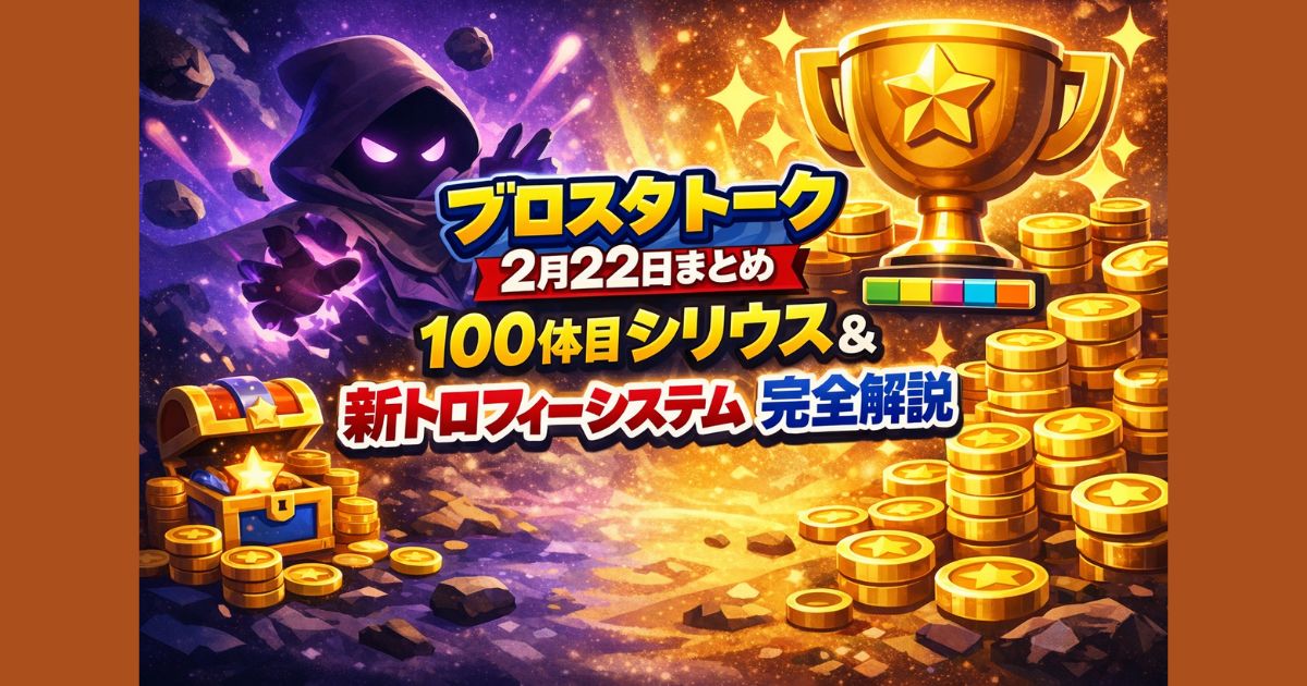 ブロスタトーク2月22日配信内容を完全まとめ。100体目の新ブロウラー「シリウス」の性能詳細、新トロフィーシステムPrestige導入、リセット廃止、バランス調整や新モード情報までわかりやすく解説します。 はじめに ブロスタトークの2月22日配信がありました。あのワクワク感がたまらないイベントで、今回は100体目の新ブロウラー発表にトロフィーシステムの大改革まで飛び出して、ゲームの未来が一気に変わりそうな内容満載。公式YouTubeで配信されたこのトーク、詳細をメモしながらチェックしたので、気になるポ... -