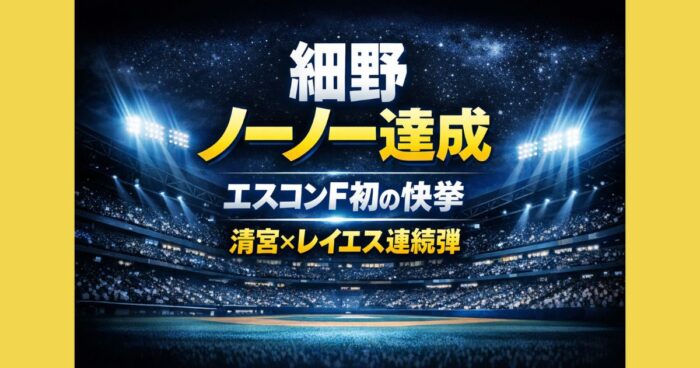 細野晴希がノーヒットノーラン達成!エスコンF初の快挙に清宮幸太郎とレイエスが2度の連続ホームランで大勝。試合詳細・記録・選手活躍をわかりやすく解説します。 はじめに エスコンフィールド北海道で行われた日本ハムの開幕戦、これは本当に“神試合”でした。 2026年3月31日の千葉ロッテ戦で、細野晴希 がなんとノーヒットノーラン達成。 しかもただのノーノーじゃなくて、エスコンF初という歴史的な記録付きです。 さらに打線では清宮幸太郎 とフランミル・レイエス が、まさかの1試合で2回も連続ホームラン。 ... -
