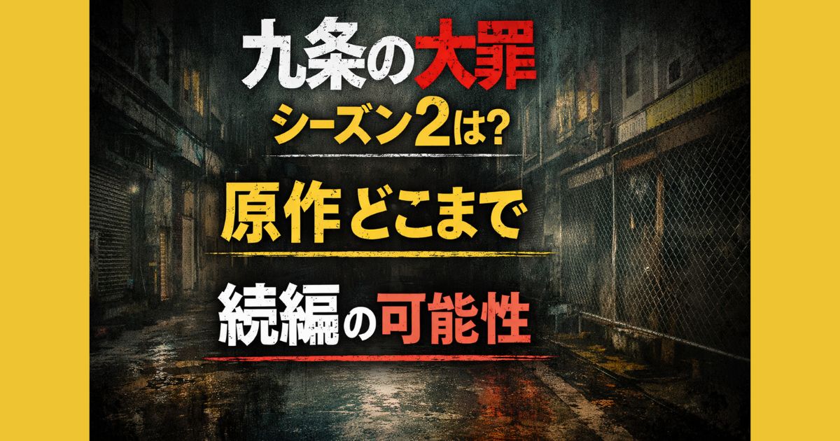 Netflixドラマ『九条の大罪』シーズン2はいつ?原作どこまで進んだのか、漫画との忠実度や今後の展開を徹底検証。2026年最新情報をもとに続編の可能性や公開時期を分かりやすく解説します。 はじめに Netflixで配信された『九条の大罪』を一気見して、余韻が抜けないままこの記事を書いています。柳楽優弥さん主演のこの作品は、裏社会と法の境界をえぐる重厚なストーリーが特徴で、見始めたら止まらない中毒性があります。 実際に視聴して感じたのは、「不快なのに目が離せない」という独特の魅力。この記事では... -