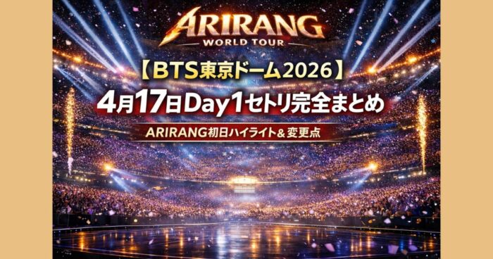 【BTS東京ドーム2026】4月17日Day1セトリ完全まとめ|ARIRANG初日ハイライト&変更点