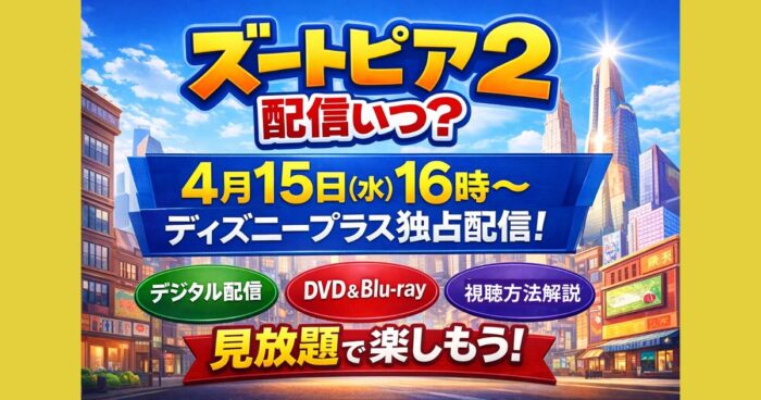 ズートピア2の配信はいつ?ディズニープラスで2026年4月15日16時から見放題スタート。劇場公開からの流れやデジタル配信、Blu-ray発売日まで最新情報を分かりやすく解説します。 はじめに 最近話題のディズニー最新作「ズートピア2」ですが、ついに配信情報が正式に発表されました。 劇場で見逃した方や、もう一度じっくり楽しみたい方にとっては、待望のタイミングです。 この記事では、ディズニープラスでの見放題配信開始日をはじめ、現在の視聴方法や配信までの流れ、さらにBlu-ray発売情報まで分かりやすくま... -