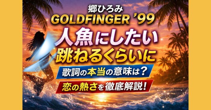 「人魚にしたい 跳ねるくらいに」の意味は?郷ひろみ『GOLDFINGER'99』の歌詞をもとに、夏の恋の高揚感や比喩表現をわかりやすく解説。人魚の意味や「跳ねるくらいに」の本当のニュアンスも整理します。 はじめに GOLDFINGER'99に登場する「人魚にしたい 跳ねるくらいに」というフレーズは、印象的でありながら意味が分かりにくい言葉として、多くの人が気になる一節です。 この曲は「アチチ アチチ」というサビに象徴されるように、夏の熱さと恋の高揚感を強く打ち出したダンスナンバーとして知られています。 歌... -