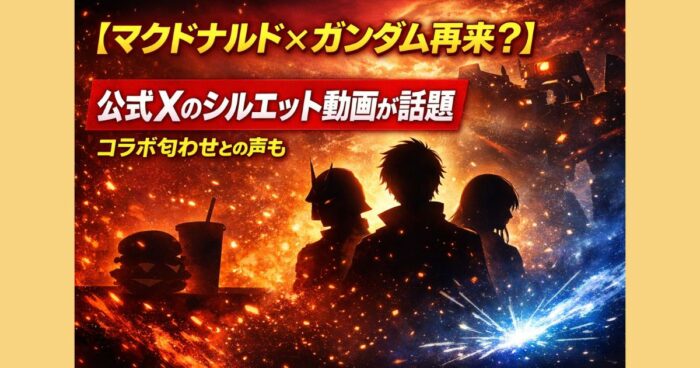 マクドナルド公式Xのシルエット動画が話題に。ガンダムを連想させる演出や声優、権利表記から「コラボ再来?」との声も。現時点の事実と予想を分かりやすく整理。 はじめに 日本マクドナルド公式Xが、2026年4月5日から6日にかけて投稿した動画やシルエット画像が、大きな話題を呼んでいます。 その演出が、アニメ『機動戦士ガンダム』を連想させる内容だったことから、SNSでは「ガンダムコラボでは?」という声が広く見られるようになりました。 過去には2022年の「シャア専用マクドナルド」が大きな注目を集めた... -