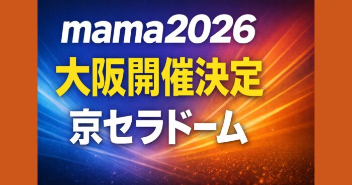 mama2026は京セラドーム大阪で11月20日・21日に開催決定。出演者・視聴方法・何時からかなど最新情報をまとめて解説。 ■はじめに mama2026の開催情報が発表され、「いつ?どこ?何時から?」と気になっている人も多いですよね。2026年のMAMA AWARDSは大阪・京セラドーム開催が決定し、K-POPファンの間で大きな話題になっています。 世界中のトップアーティストが集まるこのイベントは、毎年サプライズ演出や豪華なパフォーマンスでも注目される一大音楽授賞式です。 この記事では、開催日程・会場・出演者・視聴方... -