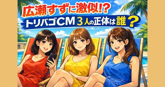 トリバゴ最新CMの出演者は誰?赤・黄・青のデッキチェアに座る3人の女性が話題となり、特に赤い服の女性が広瀬すずに激似とSNSで注目されています。本人なのか、出演者情報やネットの声をもとに事実と観察を分けて徹底検証します。 はじめに 最近テレビやYouTubeで流れているトリバゴの最新CMが、SNSや知恵袋を中心に話題になっています。特に注目されているのが、赤・黄・青の服を着た3人の女性が登場するデッキチェアのシーンです。 その中でも「赤い服の女性が広瀬すずにそっくり」との声が増えており、「本人... -