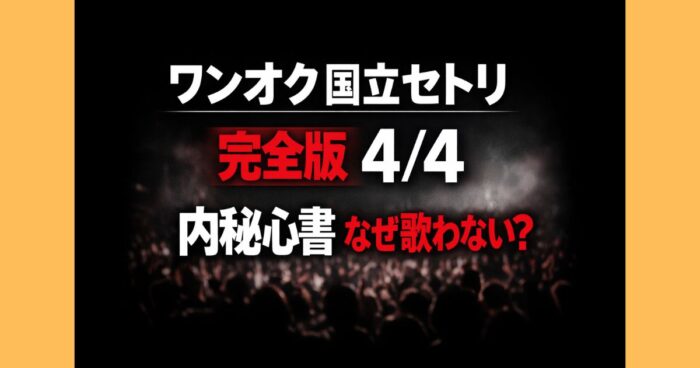 ONE OK ROCK国立競技場ライブ4/4セトリをX投稿から完全整理。全23曲(非公式)を掲載し、話題の「内秘心書」が歌われなかった理由も徹底解説。UVERworldコラボやファンのリアルな反応、過去セトリ比較まで網羅した保存版です。 はじめに 4月4日に行われたONE OK ROCKの国立競技場ライブは、まさに“伝説級”の一夜となりました。 本記事では「docomo presents THE MUSIC STADIUM 2026 organized by ONE OK ROCK」初日公演のセトリを、X(旧Twitter)の実況投稿から集計し分かりやすく整理しています。 さらに、デビ... -