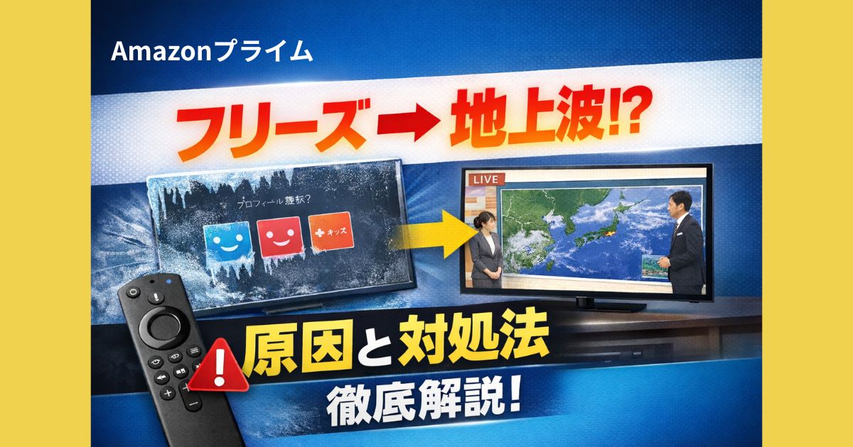 Amazonプライムビデオで「プロフィール選択後にフリーズ→地上波に切り替わる」不具合が発生中?原因は通信エラーやキャッシュの可能性も。本記事では実体験をもとに、今すぐできる対処法(電源リセット・キャッシュ削除・再ログインなど)を分かりやすく解説します。 はじめに 先日、我が家でちょっと焦るトラブルが起きました。テレビでいつも通りAmazonプライムビデオを開いたところ、プロフィール選択画面で完全にフリーズしてしまったんです。 しかも操作不能のまま、数秒後に勝手に地上波へ切り替わるという... -