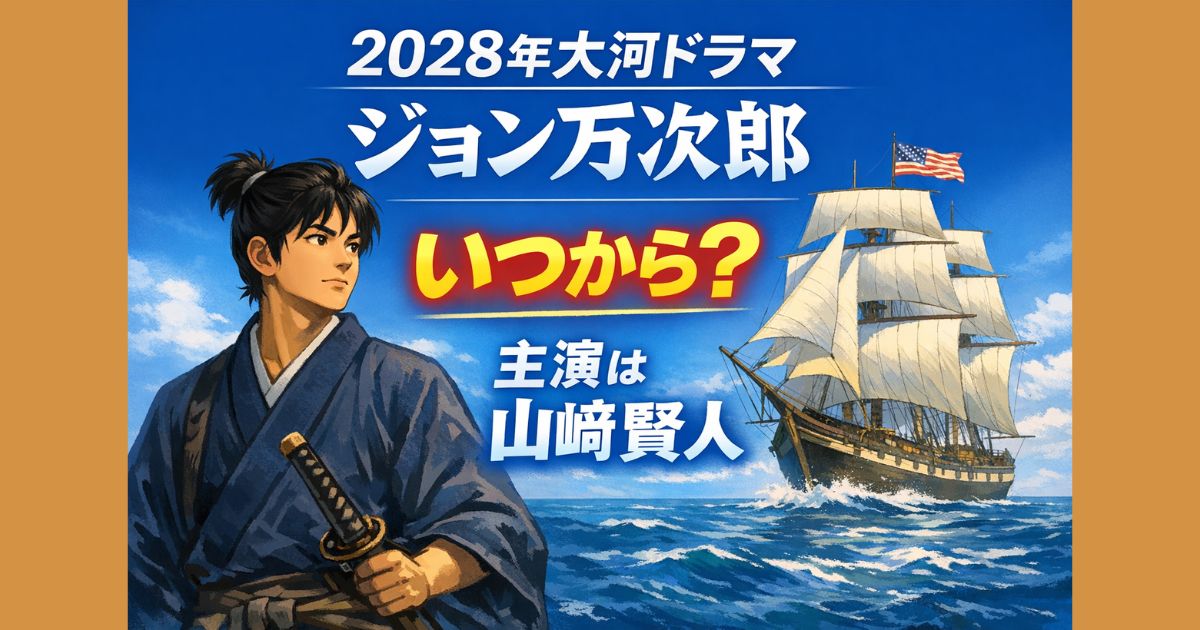 2028年NHK大河ドラマ「ジョン万(ジョン万次郎)」はいつから放送?主演・山﨑賢人やキャスト情報、史実に基づく生涯、子孫(直系4代目・5代目)まで最新情報をわかりやすく解説。放送時期や見どころも網羅した完全ガイドです。 はじめに 2028年のNHK大河ドラマが、ジョン万次郎こと中濱万次郎を主人公にした『ジョン万』に決定し、早くも注目を集めています。 主演を務めるのは山﨑賢人さん。初の大河主演となることでも話題で、発表直後から「どんな作品になるのか気になる」と期待の声が広がっています。 この... -