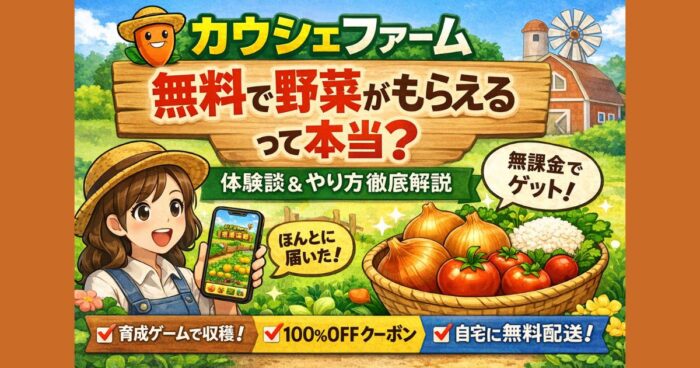 カウシェファームは本当に無料で野菜がもらえる?体験談や仕組み、やり方を徹底解説。無課金でも収穫できるのか、安全性や注意点、効率よく進めるコツまで初心者向けに分かりやすくまとめました。 はじめに 最近SNSで話題の「カウシェファーム」、本当に無料で野菜が届くのか気になっている人も多いのではないでしょうか。 ゲームのように作物を育てるだけで実際の食品が届くと聞くと、「怪しいのでは?」と感じるのも自然です。 そこで今回は、実際のユーザー体験談や仕組み、やり方まで徹底的に調査し、初心者で... -