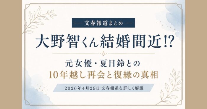 嵐メンバーの「禁じられた愛」は誰?週刊文春の予告内容をもとに、現時点で分かっている情報と有力候補、過去報道から可能性をわかりやすく整理。未公開情報は予想として解説します。 はじめに 嵐メンバーの「禁じられた愛」が報じられるとして話題になっている今回の週刊誌予告について、現時点で分かっている情報や過去報道、ネット上の反応をもとに整理しました。 まだ記事は公開前であり、具体的な名前や内容は明らかになっていませんが、「誰なのか」「相手は誰なのか」といった点に注目が集まっています。 ... -