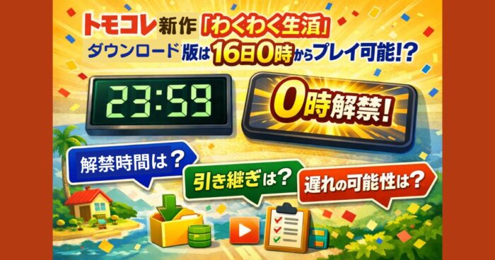 トモダチコレクション新作『わくわく生活』はダウンロード版で何時から遊べる?4月16日0時解禁の可能性や遅延の有無、体験版引き継ぎ・事前ダウンロードの注意点まで徹底解説します。 はじめに トモダチコレクションの新作『わくわく生活』が、いよいよ2026年4月16日に発売されます。約13年ぶりの完全新作ということで、シリーズファンの期待はかなり高まっていますよね。 特に気になるのが、ダウンロード版は「何時から遊べるのか」という点です。すでに購入済みの方ほど、この解禁タイミングは重要なポイントに... -