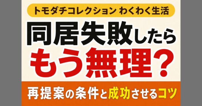 トモコレSwitchで片思いが「冷めた」と表示された…もう同じ相手とは恋できない?原因と仕様、同じ相手を恋の対象として復活させる方法をわかりやすく解説します。 はじめに トモコレSwitchで、せっかく始まった片思いが「恋が冷めた」となってしまい、ショックを受けた方も多いのではないでしょうか。 特に「この子とこの子を付き合わせたい」と思っていた場合、もう戻らないのか気になりますよね。 結論から言うと、一度冷めた恋はそのままでは戻りにくいですが、条件を変えることで同じ相手を恋の対象として再び... -