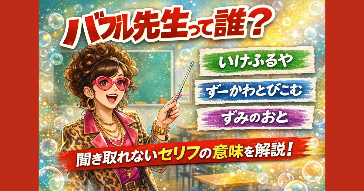ファンタCM「バブル先生」が話題!「いけふるや」「ずーかわとびこむ」など聞き取れないセリフの正体は?出演者は幸田尚子さんと見られるが公式発表はなし。松尾芭蕉の俳句との関係や意味、なぜ聞き取りにくいのかを分かりやすく解説します。 はじめに 最近話題になっているファンタのCM「バブル先生」篇。独特すぎる早口とテンポのせいで、「何て言ってるの?」と感じた人も多いのではないでしょうか。 特に「いけふるや」「ずーかわとびこむ」「ずみのおと」と聞こえるセリフは、SNSでも「聞き取れない」と注目... -