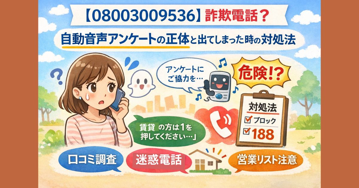 08003009536から突然の着信…出て大丈夫?自動音声アンケートの正体と口コミを緊急検証。営業リストの危険性や今すぐできる安全対処法、188相談方法まで完全解説します。