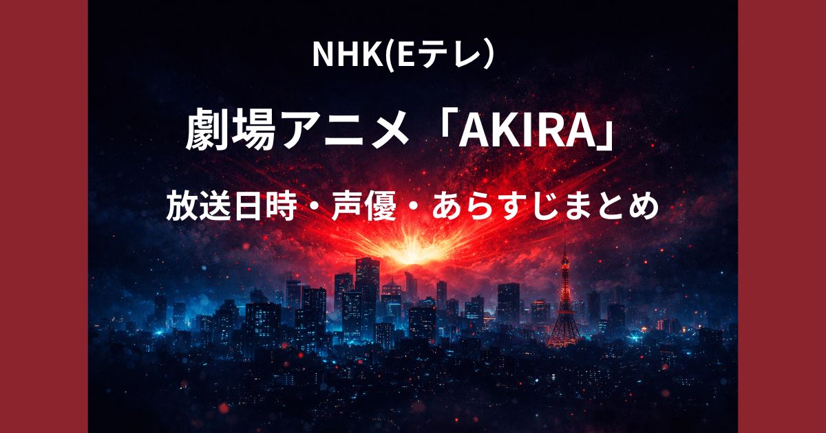 劇場アニメ『AKIRA』が2026年1月3日(土)22:00よりNHK Eテレで放送決定。放送日時、声優キャスト、あらすじ、初見で迷いやすいポイントを分かりやすくまとめます。
