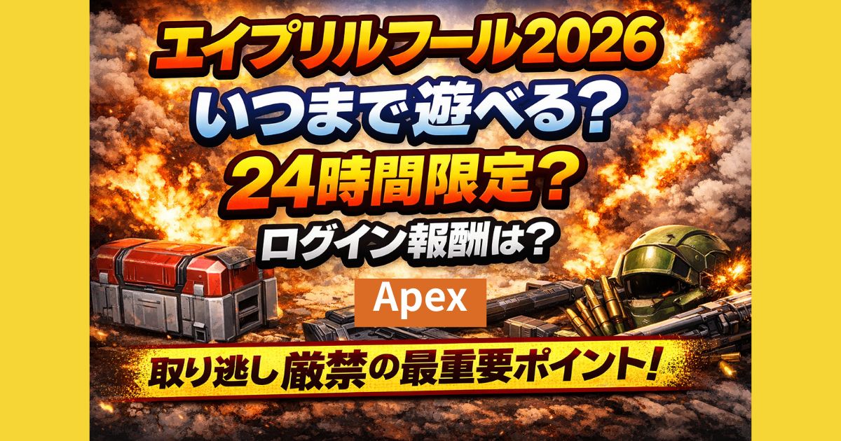 Apexエイプリルフール2026はいつまで?変則ルールは24時間限定なのか、終了は4月2日頃なのかを徹底解説。ログイン報酬の有効期限や取り逃さないコツも分かりやすくまとめています。