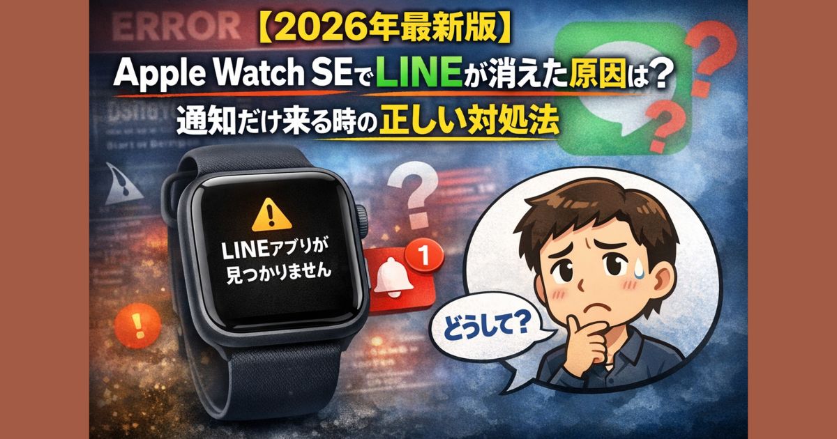 Apple Watch SEでLINEが消えた/再インストールできない原因を解説。「リクエストを完了できません」は互換性ブロックの可能性も。世代とwatchOS確認、復旧手順、通知だけで使う設定、watchOS 11対応機への判断基準まで2026年最新版でまとめました。