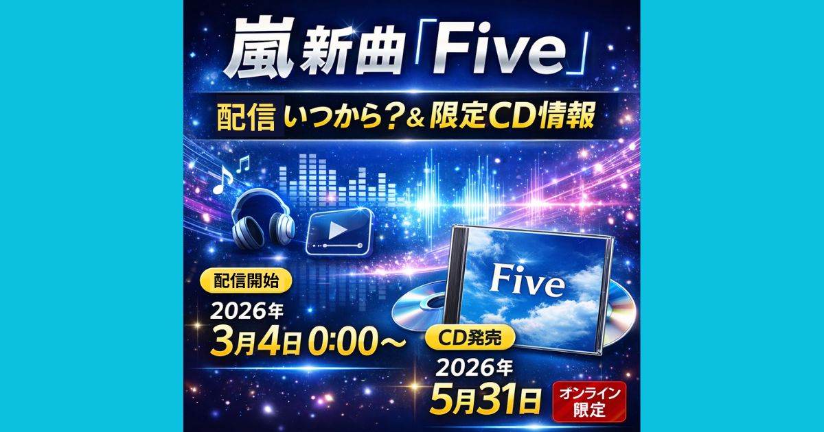 嵐の新曲「Five」が2026年3月4日に配信リリース決定。配信開始時間や対応サービス、ファミクラストアオンライン限定CDの発売日・予約期間・価格・収録内容まで詳しくまとめます。
