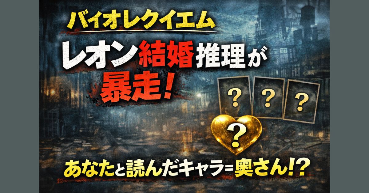 バイオハザード レクイエムで話題のレオン結婚説。エンディングコンセプトアートの薬指リングから始まった考察と、SNSで広がった「あなたと読んだキャラ=奥さん」ミームをわかりやすく解説します。