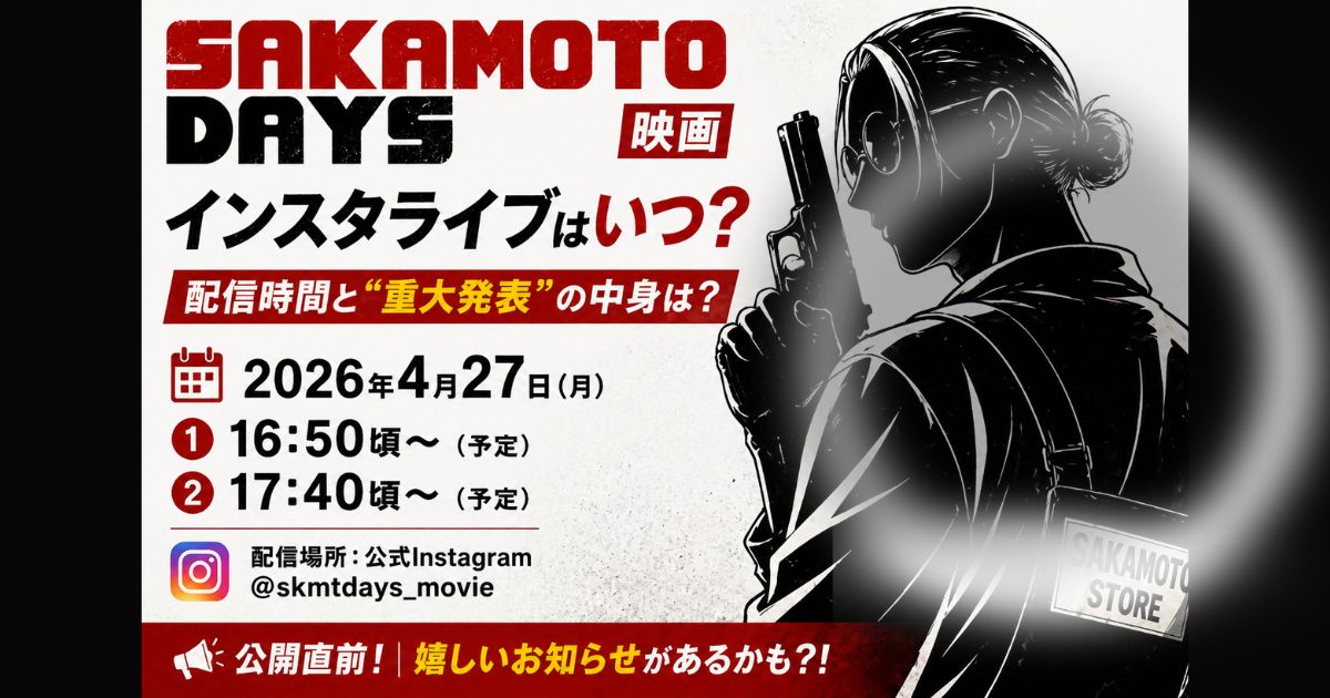 SAKAMOTO DAYS映画のインスタライブはいつ?4月27日の配信時間(16:50・17:40予定)や内容、“重大発表”の可能性、見逃さないコツまでわかりやすく解説します。 はじめに 映画『SAKAMOTO DAYS』の公開直前企画として、公式Instagramライブの実施が発表されました。配信時間や内容、気になる“お知らせ”について調べてみました。 公開目前というタイミングもあり、重要な発表がある可能性も注目されています。本記事では、ライブの正確な情報と、現時点で考えられるポイントを整理しています。 公開直前だからこそ内... -