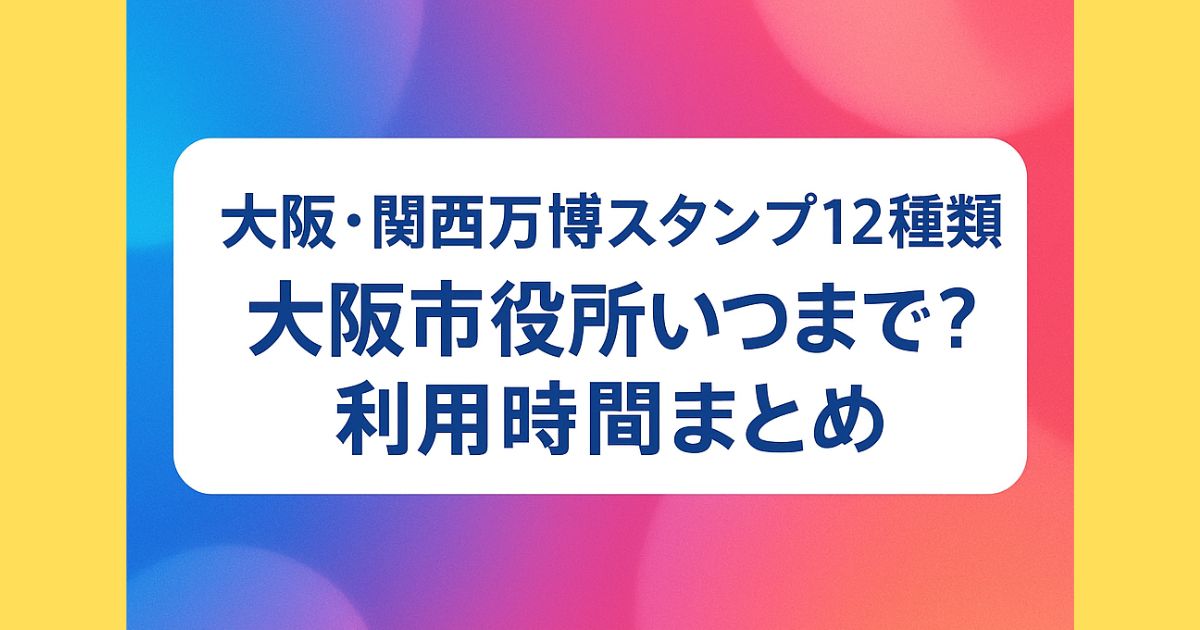 大阪市役所に大阪・関西万博スタンプ12種類が登場。2025年12月26日まで無料で押印可能。利用時間、光のルネサンス期間の延長、12種のスタンプ一覧、設置場所をまとめて詳しく解説。