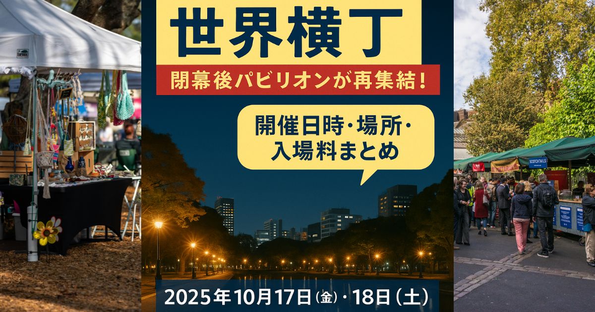 万博の感動が街に帰ってくる!閉幕直後に靱公園で開かれる 世界横丁は、世界各国の料理や文化が集う国際マルシェ。開催日・場所・アクセス・入場料まで徹底解説!