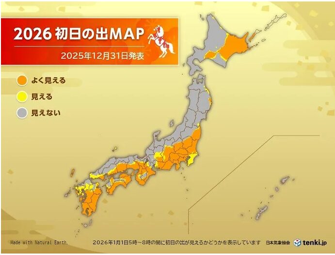 2026年「初日の出」見られる所は?|全国の天気傾向