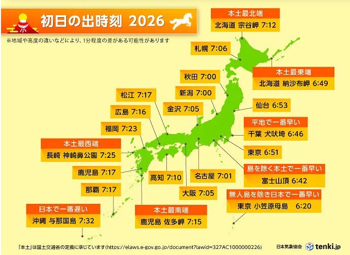 全国主要都市 初日の出時刻(2026年)