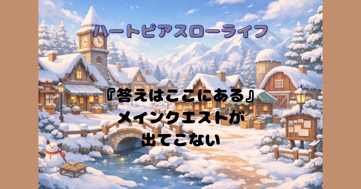 ハートピアスローライフのメインクエスト「答えはここにある」が出てこない原因を解説。条件・初心者ガイド任務・不具合の可能性と対処法を分かりやすくまとめました。