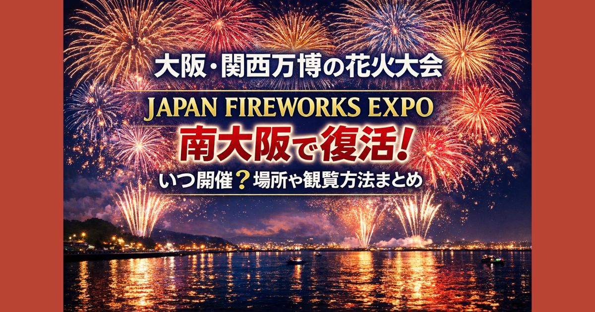大阪・関西万博発の花火大会「JAPAN FIREWORKS EXPO2026」が南大阪で復活開催。2026年4月4日の開催日程や場所、観覧方法、チケット情報、ミュージックスターマインの見どころを最新情報でまとめます。