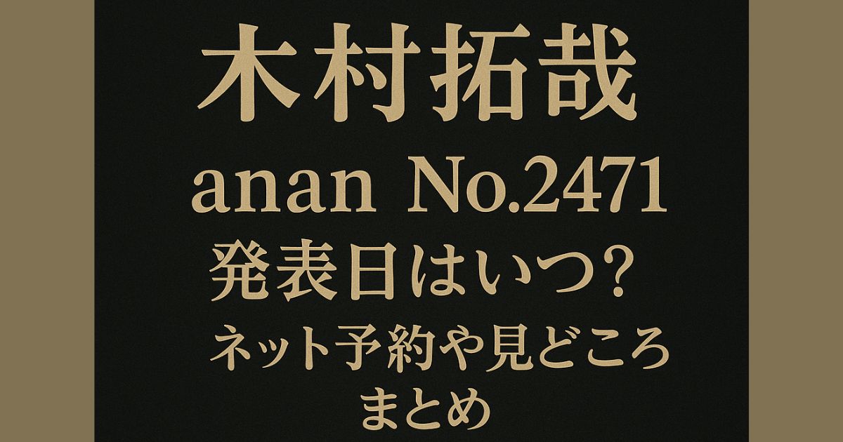 anan No.2471号(木村拓哉表紙)は、主要書店・コンビニ・オンライン書店で販売予定。