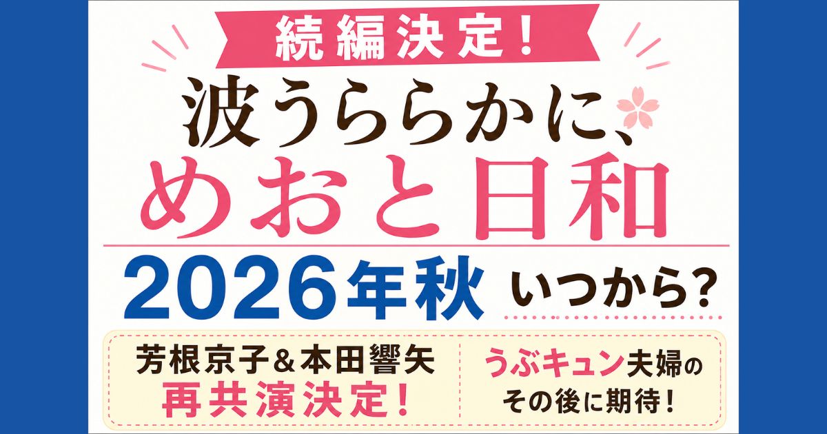 『波うららかに、めおと日和』の続編は、2026年秋に放送予定と発表され、主演の芳根京子さんと本田響矢さんの続投も決定しています。