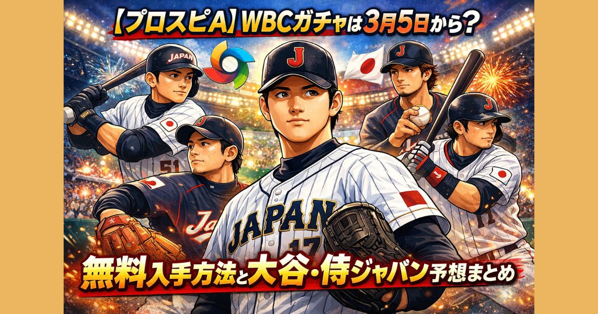 プロスピAのWBCガチャは3月5日開幕予定。2006・2009侍ジャパンの無料入手方法や排出率予想、魔改造大谷の可能性まで最新情報を徹底解説。無課金でも狙える攻略ポイントをまとめました。