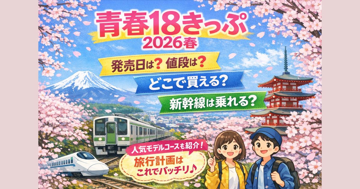 青春18きっぷ2026春の発売日・値段・利用期間をわかりやすく整理。どこで買えるか、使える列車と新幹線オプション、注意点や大阪・東京発モデルコースも紹介。