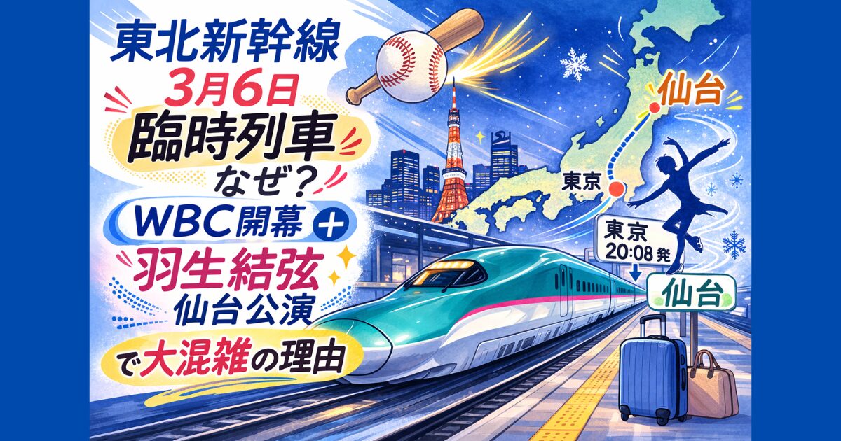 2026年3月6日に東北新幹線で臨時列車「やまびこ415号」が運転される理由を解説。東京20:08発の仙台行き増発の背景にはWBC開幕と羽生結弦アイスショー「notte stellata 2026」仙台公演が重なる影響も。混雑予想や回避方法もまとめました。