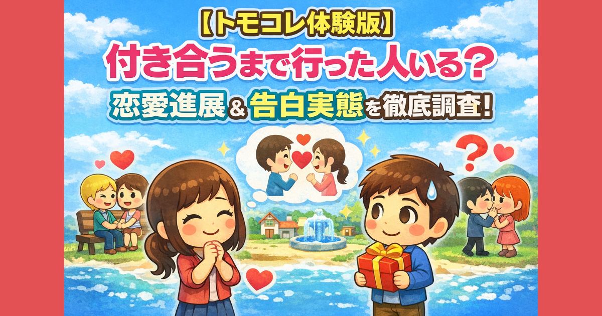 トモコレ体験版で付き合うまで進める?告白イベントの有無や恋愛の進展状況を徹底調査。実際のプレイ報告をもとに、恋人になる条件や攻略のコツ、製品版との違いまで分かりやすく解説します。
