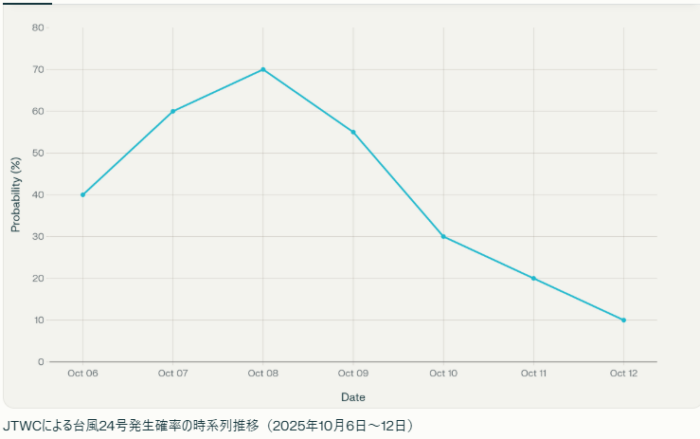 JTWCでは、10月6日から12日にかけての発生確率を段階的に発表しています。