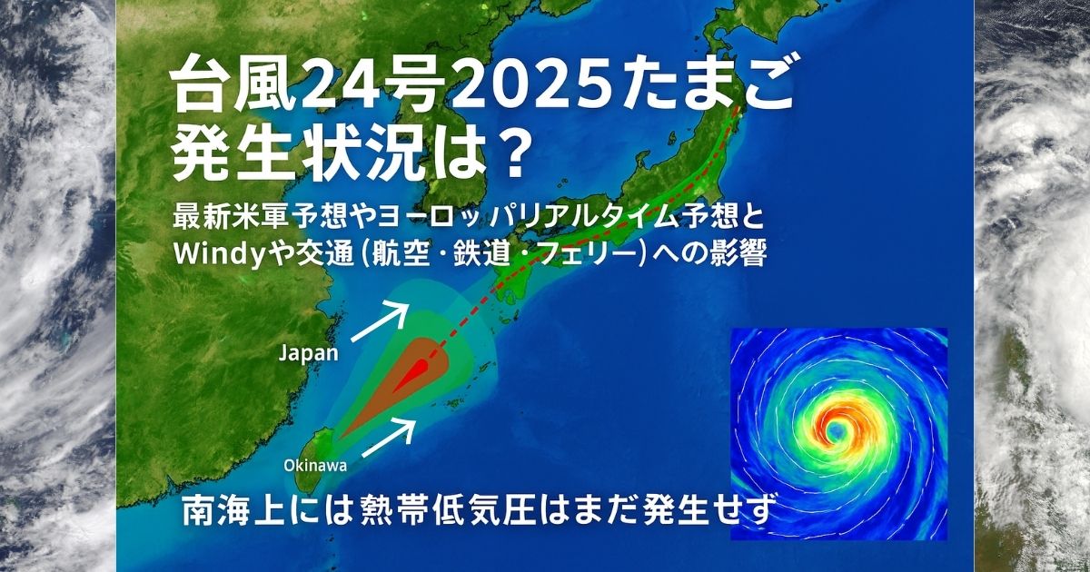 2025年10月12日時点で台風24号のたまごは未発生。米軍JTWC・ECMWF最新予想やWindy進路、航空・鉄道・フェリーなど交通影響を詳しく紹介。
