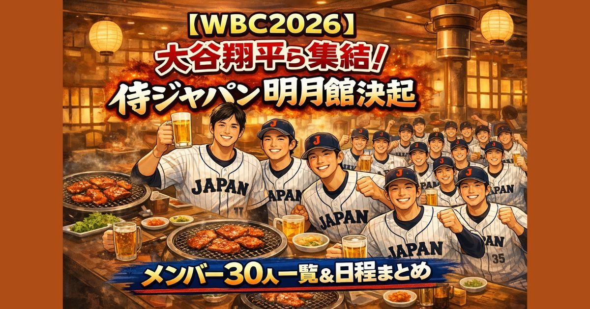 WBC2026直前、侍ジャパンが大阪「明月館 上本町本店」で決起集会!大谷翔平・山本由伸らメジャー組を含むメンバー30人一覧と東京ドーム1次ラウンド日程、強化試合結果まで総まとめ。連覇へ向けた最新情報をわかりやすく解説します。
