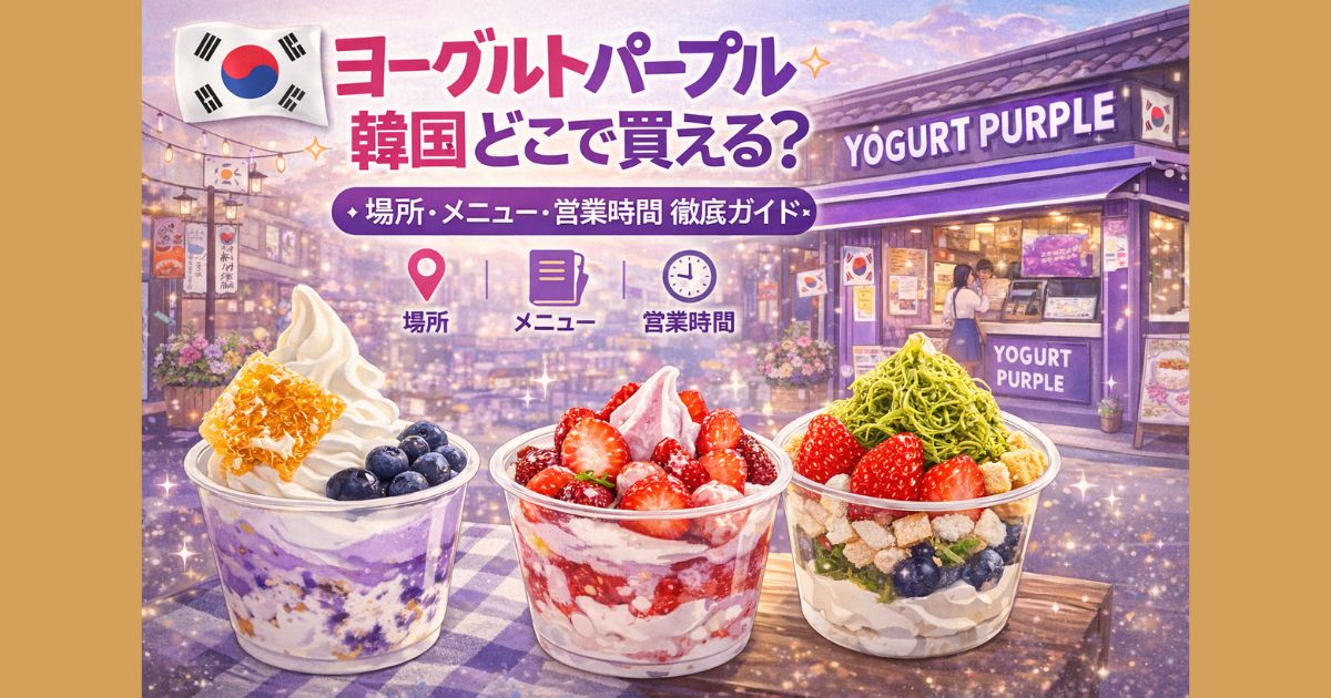 ヨーグルトパープルは韓国で大人気のヨーグルトアイス。日本初上陸の大阪コリアンタウン店の場所、営業時間、種類、トッピング、オンライン販売情報をまとめて紹介します。